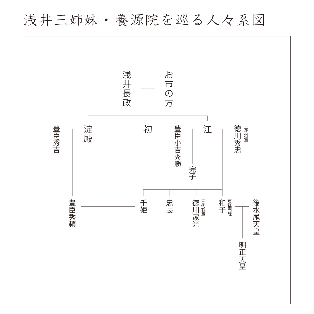 織田信長の妹·お市を妻としましたが、後に長政は信長と離反し「姉川の戦」で織田·徳川連合軍に敗れ、天正元年(一五七三)に小谷城で自刃しました しかし妻お市の方は娘三人と共に信長によって助け出され、長女茶々は後に豊臣秀吉の側室となり淀殿と呼ばれました。また三女お江与(法名崇源院)は二代将軍徳川秀忠の正室となりました。